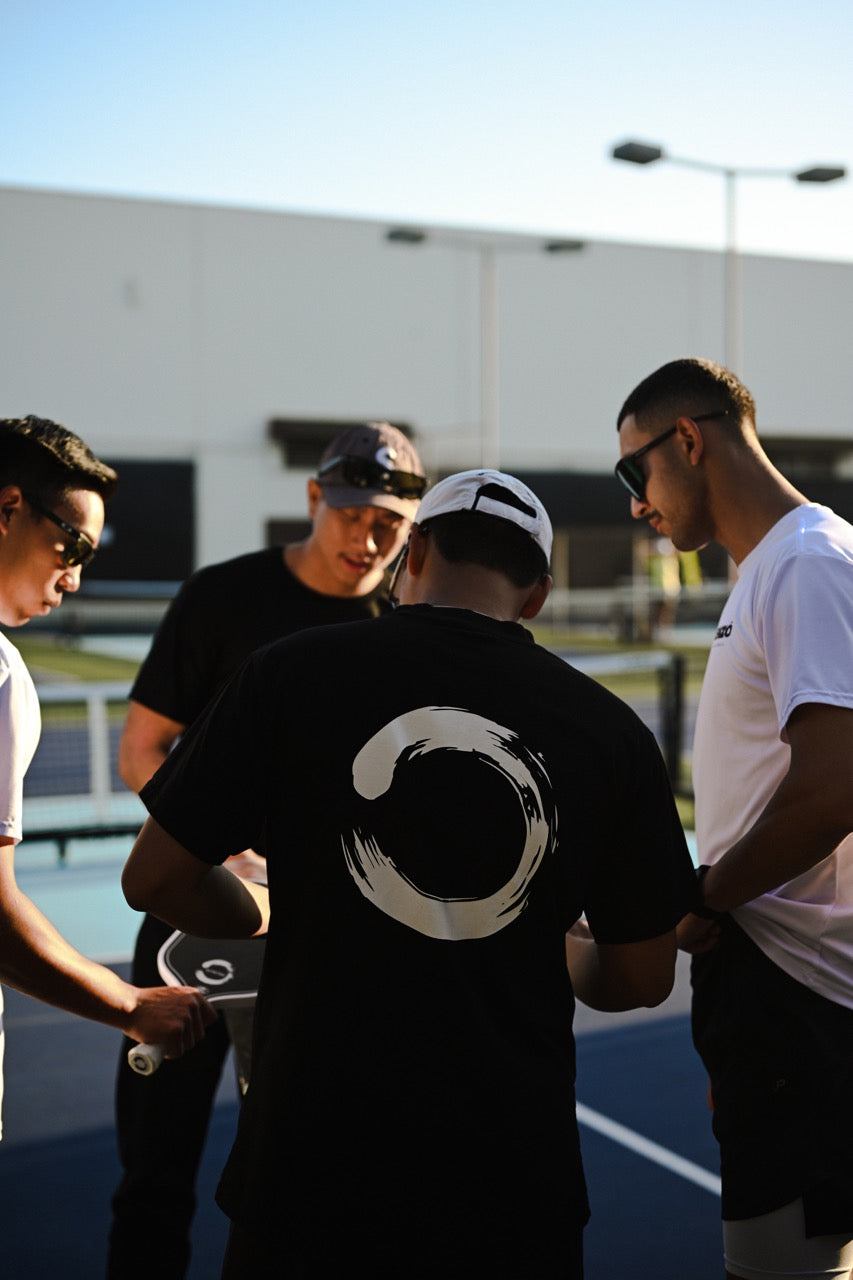 Enzo, inspired by the Japanese Ensō symbol, represents the essence of calm and efficient thinking and acting. This approach, centered on mindfulness and attentiveness, is crucial in pickleball, mirroring the Ensō's harmony of intentional movements and effortless grace,emphasizing the importance of being fully engaged in the present moment.